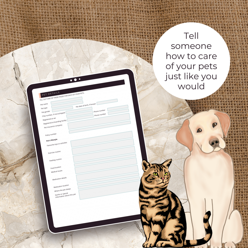 The documents are available in A4 PDF format, making it easy to print and use no matter where you are. Print physical copies to store in a secure location, or import the PDF into digital software such as GoodNotes so you can enter the details electronically.
